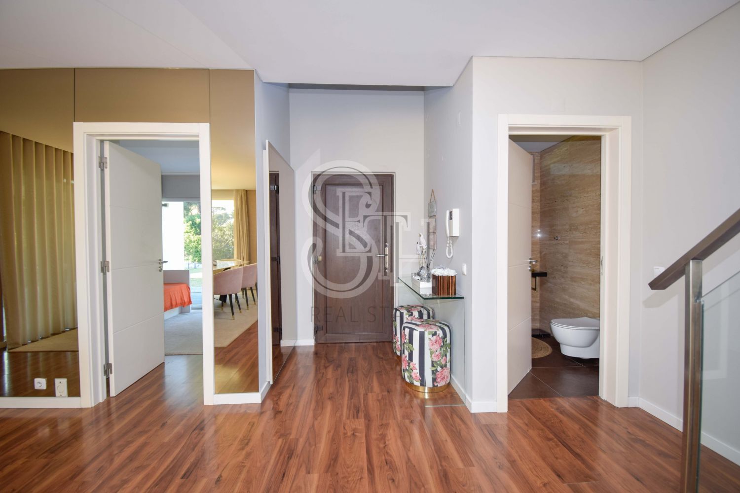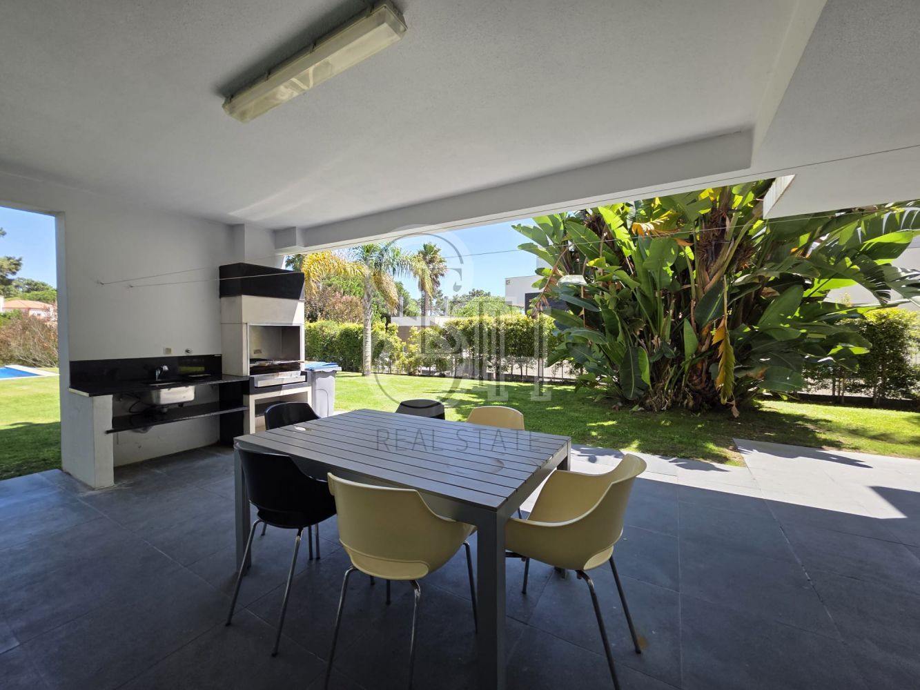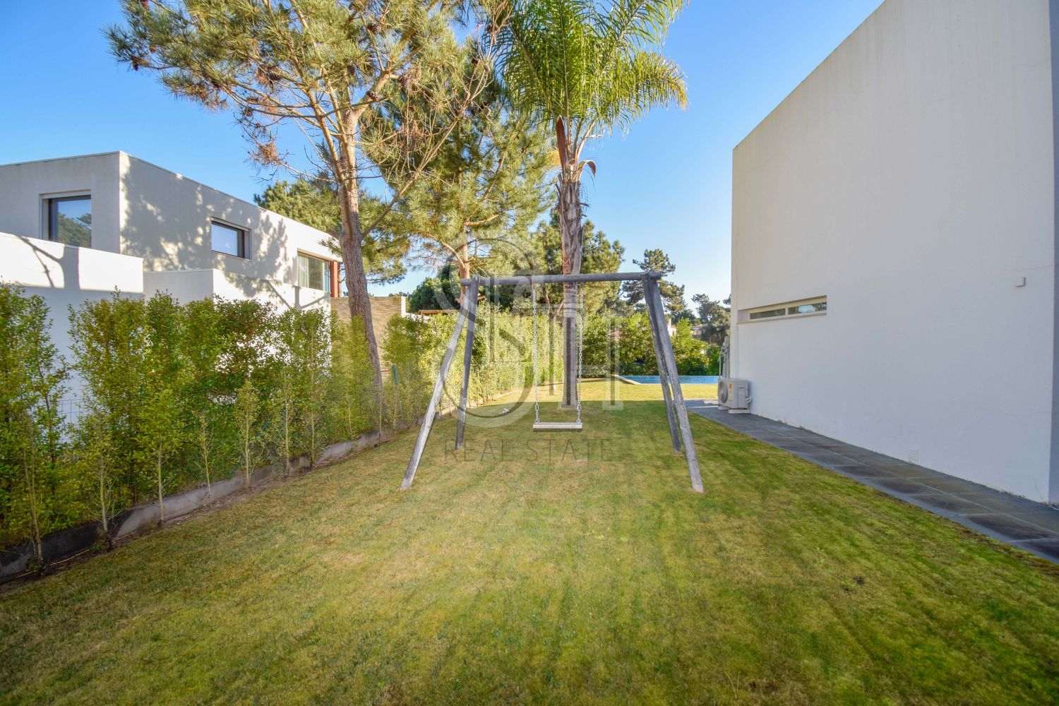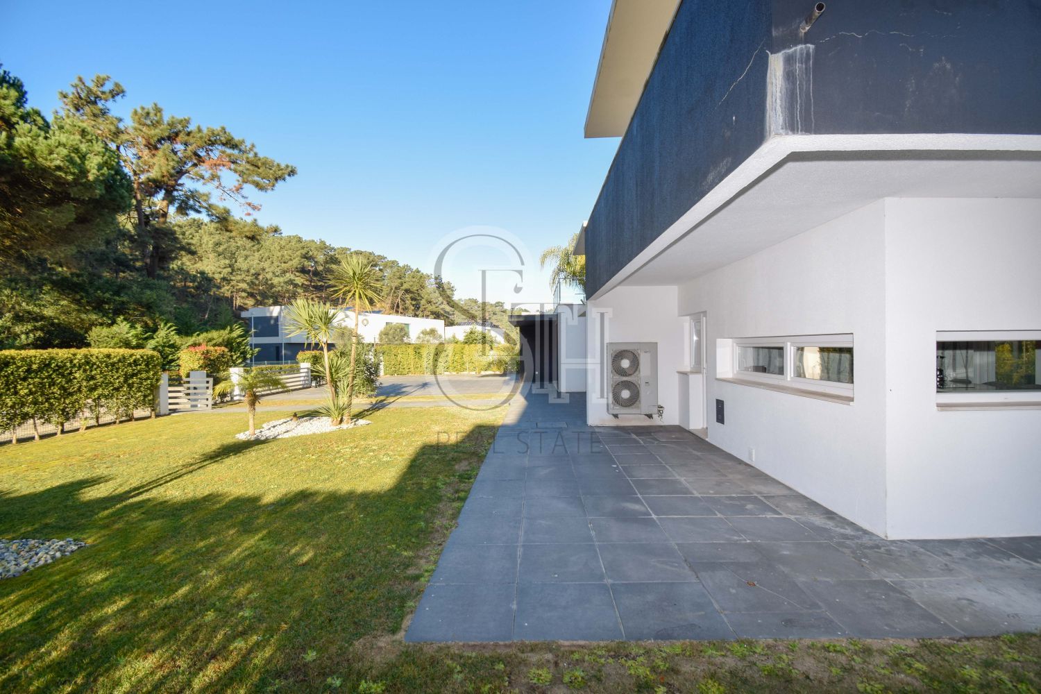A moradia encontra-se totalmente mobilada e equipada, com uma exterior vasto em jardim relvado e uma piscina privada.