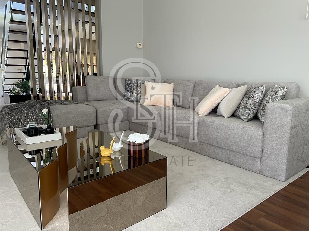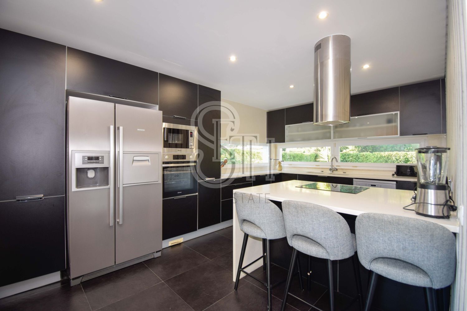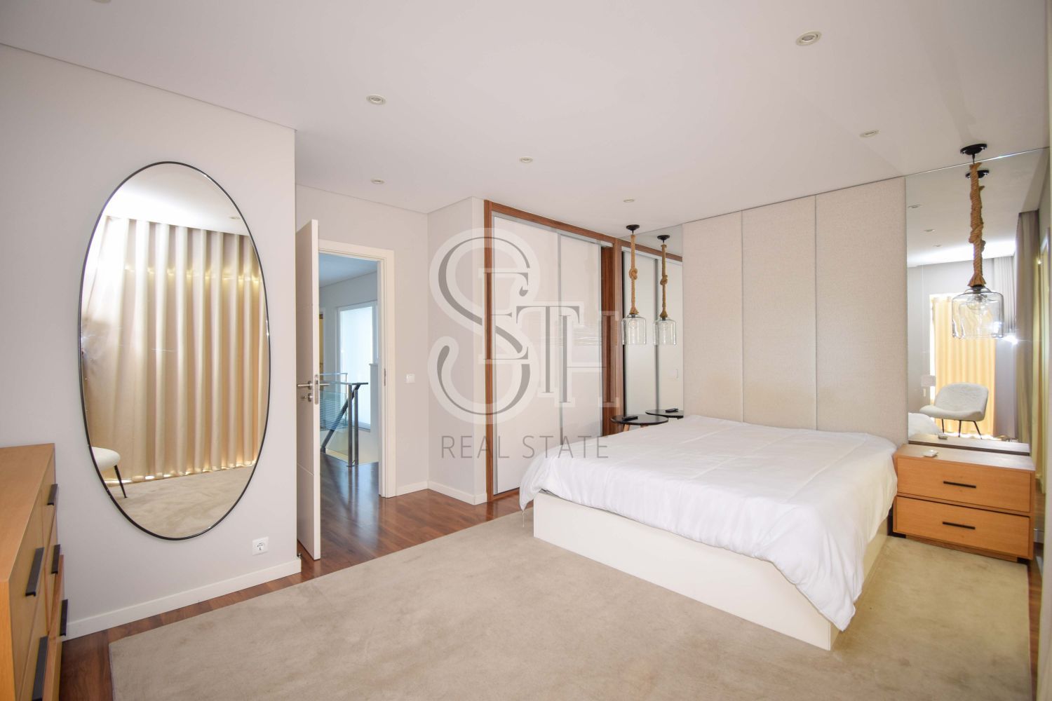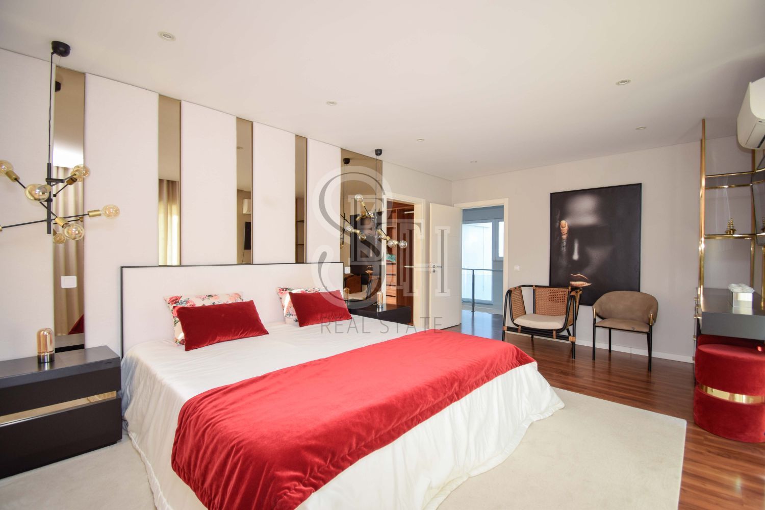 A moradia encontra-se totalmente mobilada e equipada, com uma exterior vasto em jardim relvado e uma piscina privada.