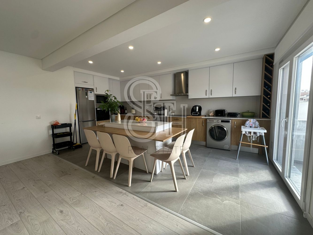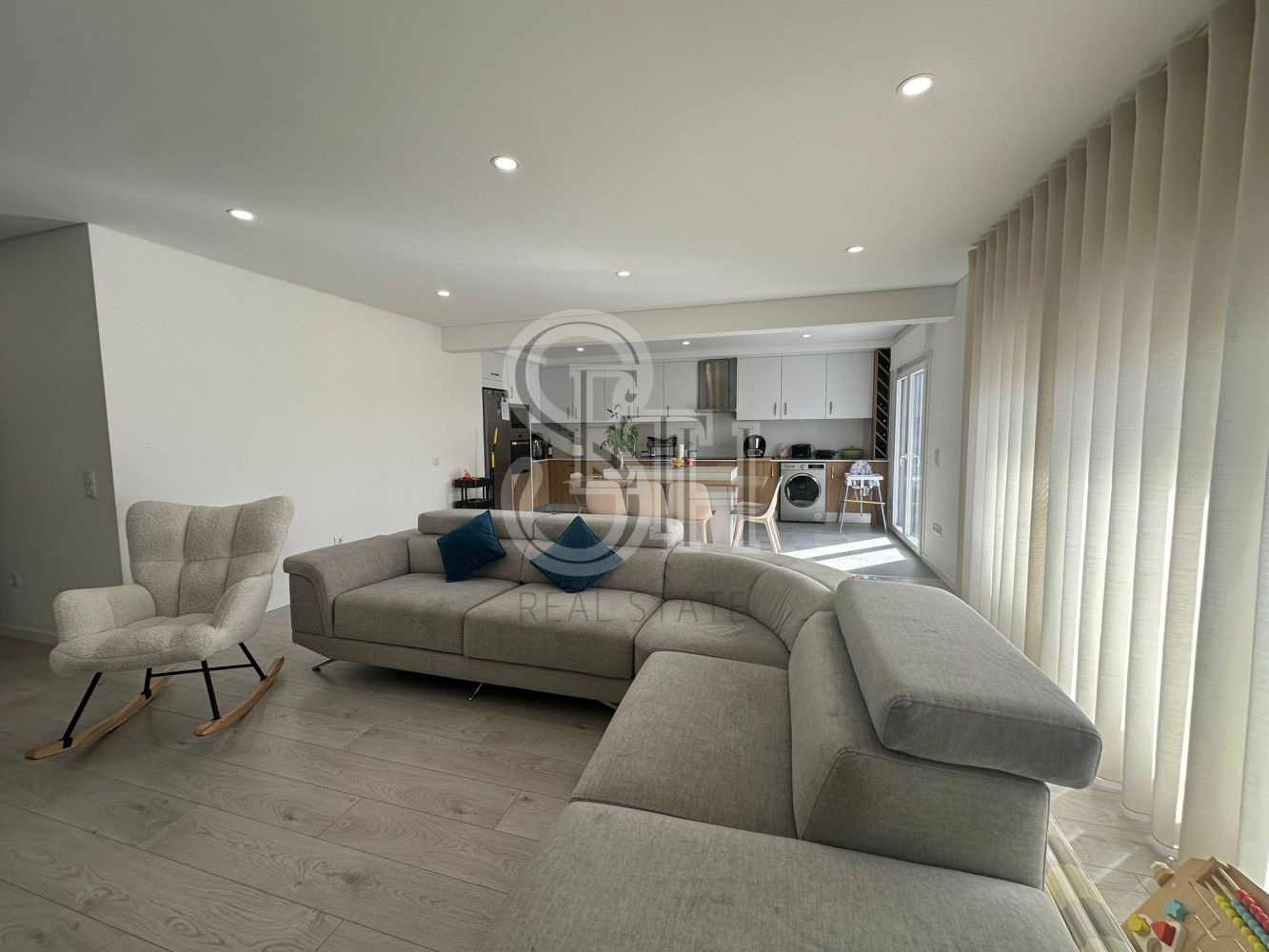 O imóvel distingue-se pela luminosidade natural e pelos acabamentos de qualidade, oferecendo todo o conforto e funcionalidade. É composto por três quartos, um dos quais suíte, todos com roupeiros embutidos. Dispõe ainda de duas casas de banho completas e cozinha totalmente equipada, pronta a utilizar.