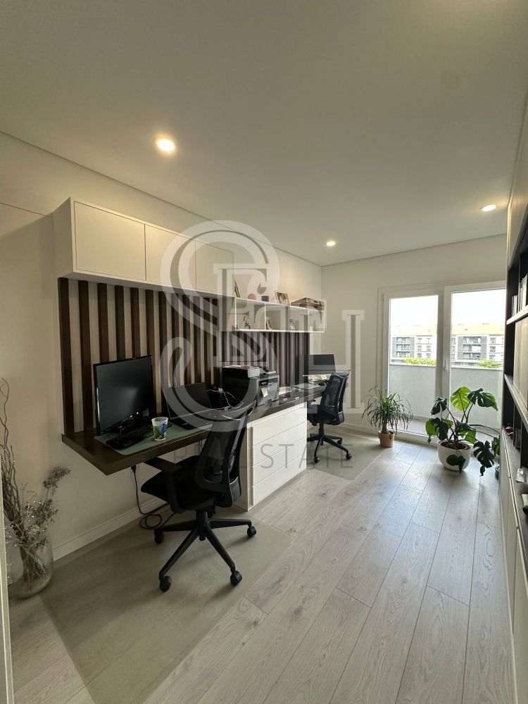 Conta com ar condicionado, estores elétricos e pré-instalação em todas as áreas, garantindo eficiência e comodidade. O apartamento inclui também lugar de parqueamento para uma viatura.